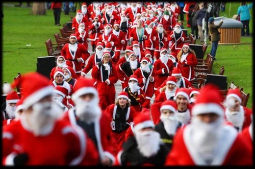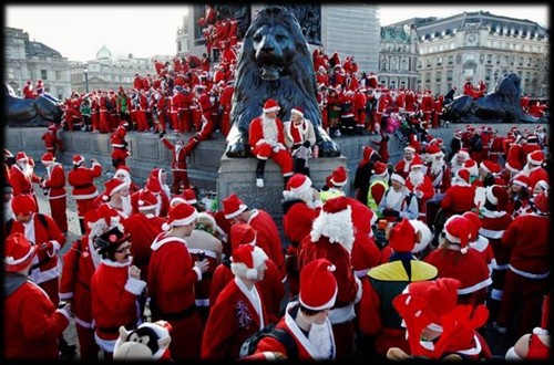 Em Edimburgo também houve centenas de pessoas a correr vestidas de Papai Noel. O evento SantaCon é mesmo para reunir pessoas a fim de confraternizar, nas ruas e nos bares de cidades ao redor do mundo, espalhando alegria. O foco está na espontaneidade e criatividade, pois é Natal. O importante é que estejam todos imbuídos do espírito natalino.