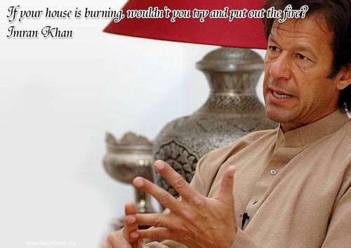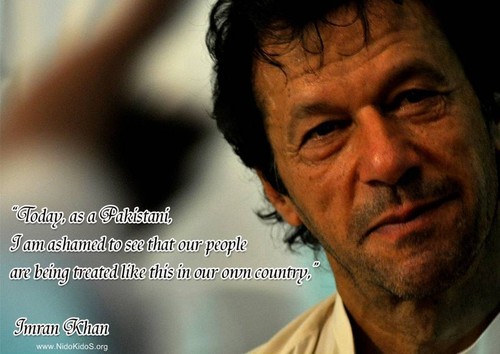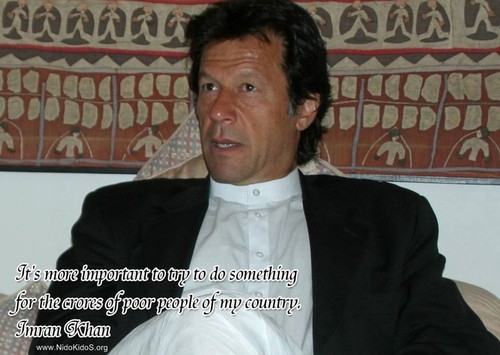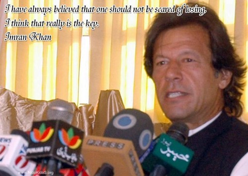 Imran Khan Niazi (25 de novembro de 1952) é um político paquistanês (em abril de 1996, fundou e se tornou presidente do partido político do Paquistão Tehreek-e-Insaf - Movimento para a Justiça) e ex-jogador de críquete (em 1992, aos 39 anos, Khan liderou seus companheiros para a primeira e única vitória do Paquistão na Copa do Mundo).