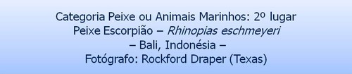 Mais de 700 imagens subaquáticas de 20 países foram submetidas ao Concurso de Fotografia Subaquática 2012, organizado pela Universidade de Miami "Rosenstiel School of Marine & Atmospheric Science". Trata-se de um evento anual (acontece desde 2005) aberto a todos os fotógrafos amadores e com fotografias exclusivamente de vida marinha, em um ambiente natural de água doce ou de água salgada.