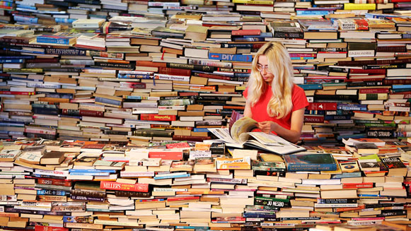 A instalação baptizada de aMAZEme foi construída no Southbank Centre, em Londres, com uns impressionantes 250.000 livros usados, e o auxílio de 200 voluntários.