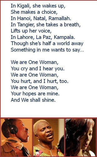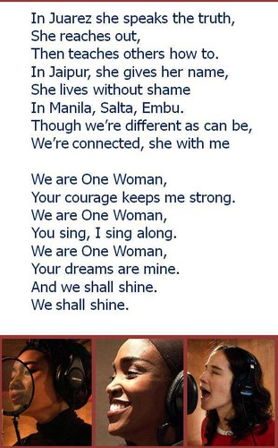 “One Woman nos traz uma mensagem de esperança e inspiração”, diz Michelle Bachelet, Diretora Executiva da ONU Mulheres. “Esta música nos lembra que a igualdade, os direitos humanos e a dignidade humana são inalienáveis de todos nós, cada ser humano.”