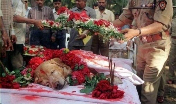 Funeral de um cão que ajudou a salvar milhares de vidas durante os ataques terroristas em Mumbai, encontrou três toneladas de explosivos.
