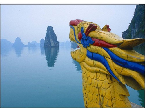 Classificada como Patrimônio Natural da Humanidade pela UNESCO em 1993, a Baía de Ha Long ou Baía de Along (português: "Onde o Dragão entra no Oceano"), com seus 1.500km² de água, é a mais conhecida baía do Vietname.