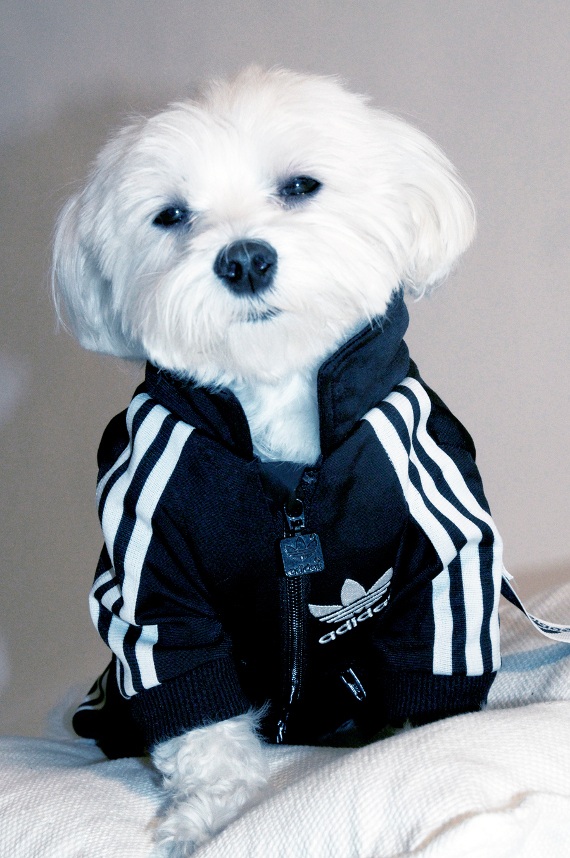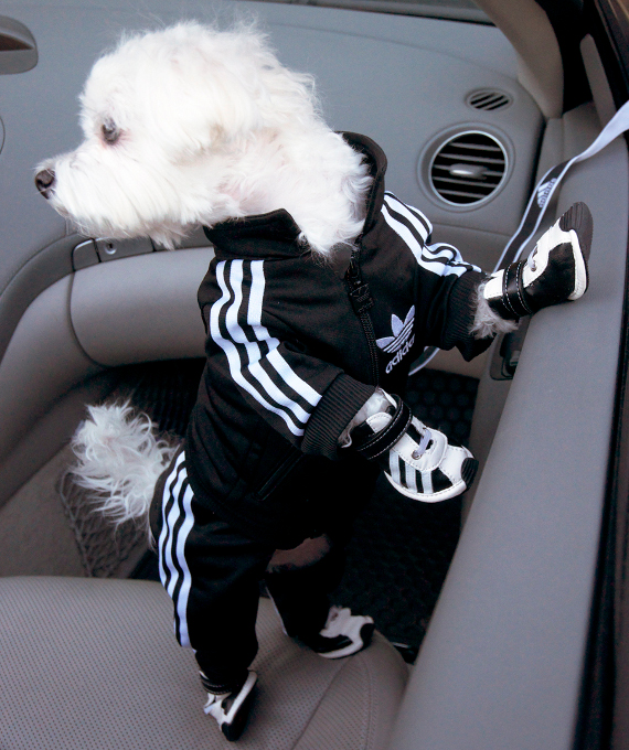 Curiosamente, tenho um vizinho meu que tem por hábito diariamente praticar corrida com os seus dois cães, lado a lado, segurando-os pelas trelas. Ao observá-lo, pensei como seria curioso se ele equipasse os canídeos com o novo fato de treino que a Adidas criou especialmente para estes bichinhos.
