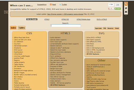 Minimalista e funcional, serve mesmo para responder à questão "Quando posso usar..." e apresenta as tabelas de compatibilidade com HTML5, CSS3, SGV e outras tecnologias em browsers para desktop e telemóveis.