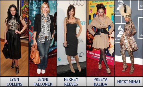 Veja nas imagens acima… Lynn Collins destaca o top estampado na produção com saia, bolsa e sandálias pretas; a apresentadora de TV Jenni Falconer optou pela estampa animal apenas na echarpe, o que incrementa o look de maneira fácil e rápida; Perrey Reeves escolheu um vestido com detalhe de animal print no colo e nas alças, opção ótima para quem não quer arriscar um visual “carregado” mas quer estar dentro da tendência; Preeya Kalida, por estar com um “chamativo” trench-coat com cinto largão, usou apenas um ankle boot com estampa animal.