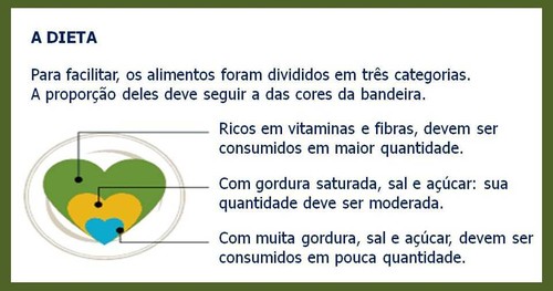 Os participantes foram instruídos a montar os pratos de acordo com a predominância das cores na bandeira. Ou seja, a dieta recomenda ter maior quantidade de alimentos verdes (ricos em vitaminas, minerais e fibras), menor proporção de alimentos amarelos (com quantidade considerável de gordura saturada) e uma quantidade menor ainda de alimentos azuis, que contêm mais gordura, sal e açúcar. Independentemente do grau de instrução, a pessoa consegue identificar o que é bom e qual a quantidade indicada.
