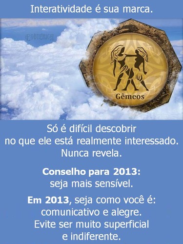 CONSELHOS ASTROLÓGICOS PARA 2013... 05.12.12 | Mari Ortiz Fonte: http://iesoterica.com Tags:astrologiaprevisões astrológicassignos do zodíaco link do postcomentar favorito Mais para ler