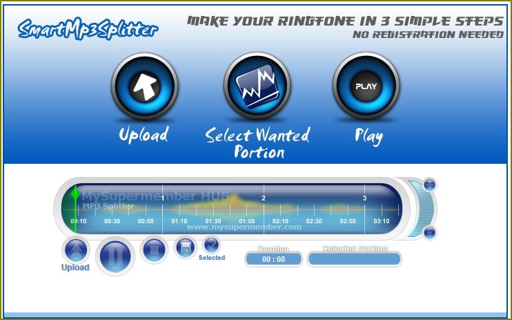 Extremamente fácil de usar, não necessita de registo, basta fazer o upload da música primeiro, depois seleccionar a parte do MP3 que pretende cortar e guardá-la no pc. Muito fácil mesmo.