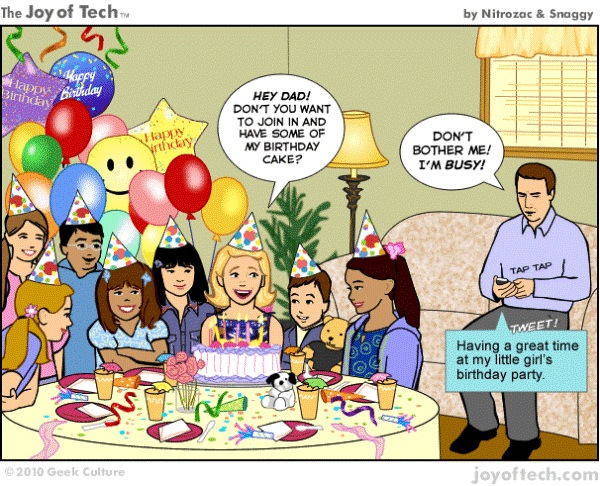 escrevendo no Twitter - Estou a divertir-me imenso na festa de aniversário da minha filhota.