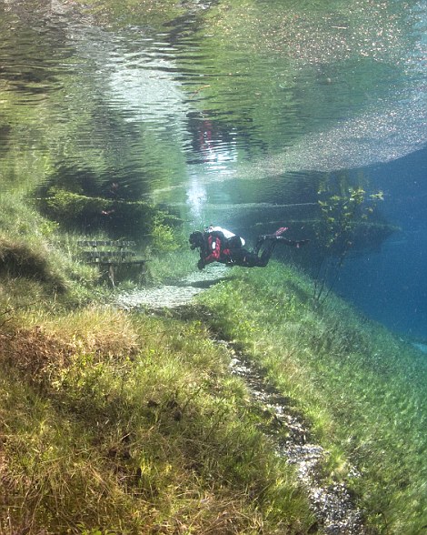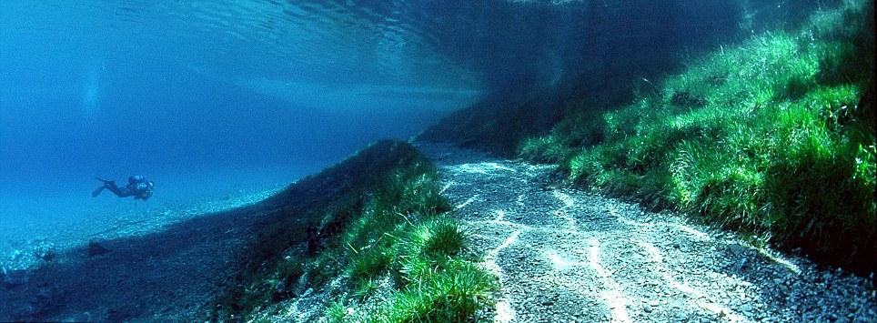 Assim, durante o Verão, o lago é visitado por mergulhadores curiosos que querem observar a panorâmica do parque mergulhado debaixo de água. Peixes nadam em bancos de madeira, num fundo coberto com relva, árvores, pontes, estradas, tudo isto cria um panorama surreal que você pode ver na galeria de fotos mais abaixo (veja o video também). Vale a pena o mergulho, sem dúvida!