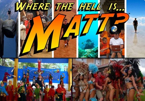 Where the Hell is Matt? [Onde diabos anda o Matt?] é a pergunta e o nome do seu site oficial, onde os vídeos dão a resposta. Veja nesse vídeo a alegria saltitante deste viajante…