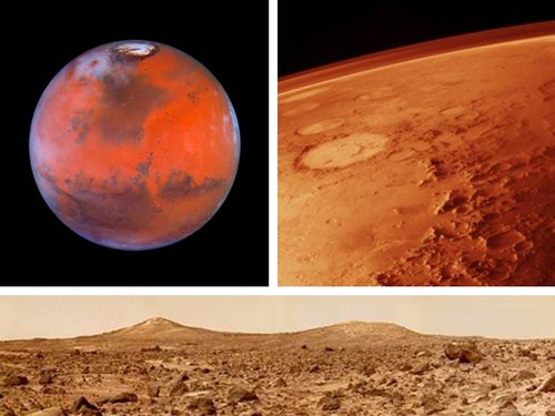 Marte tem calotas polares que contêm água e dióxido de carbono gelados, o maior vulcão do sistema solar - o Olympus Mons, um desfiladeiro imenso, planícies, antigos leitos de rios secos, tendo sido recentemente descoberto um lago gelado. Os primeiros observadores modernos interpretaram aspectos da morfologia superficial de Marte de forma ilusória, que contribuíram para conferir ao planeta um estatuto quase mítico: primeiro foram os canais; depois as pirâmides, o rosto humano esculpido, e a região de Hellas no sul de Marte que parecia que, sazonalmente, se enchia de vegetação, o que levou a imaginar a existência de marcianos com uma civilização desenvolvida. Hoje sabemos que poderá ter existido água abundante em Marte e que formas de vida primitiva podem, de fato, ter surgido.
